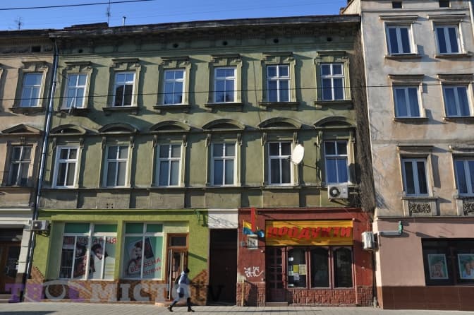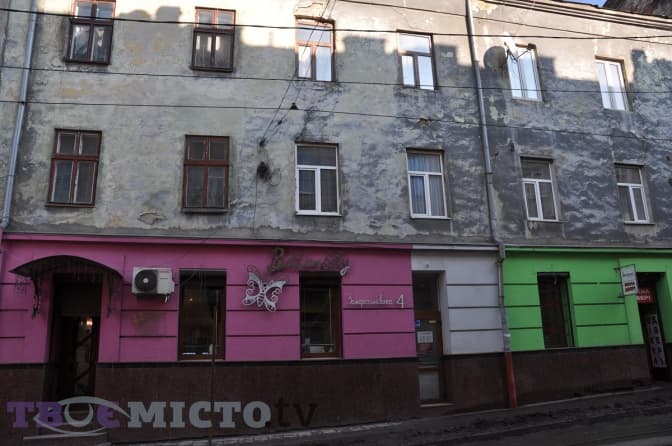 Звична ситуація для львівських кам’яниць поза сповненим туристів середмістям, де про вигляд будинків усе-таки трохи дбали: «реставрація» лише частини фасаду. «Зрозуміло, що магазин пофарбував лише свою часину фасаду. Але чому рожевою фарбою? Вона не гармоніює з жовтою вивіскою, яка, до того ж, налазить на лінії та вікно, – коментує Олександр Шутюк. – В ідеалі слід було використовувати натуральні матеріали й кольори: на старих будинках пластик виглядає не дуже добре».