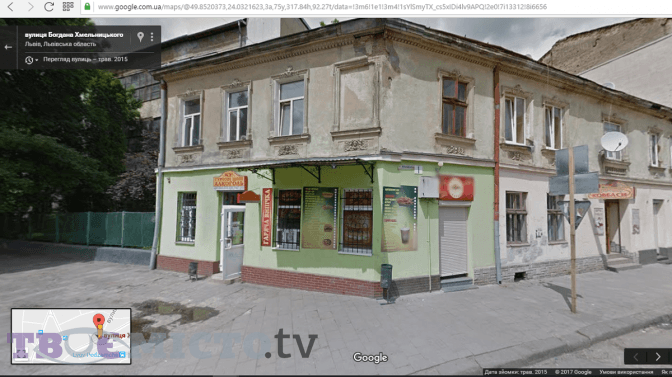 Будинок на розі Хмельницького й Жовківської має кілька проблем із фасадом, окрім забороненого віднедавна слова «алкоголь». «Це яскравий приклад того, що ніхто не може домовитись із сусідами, щоб бодай погодити кольори. Знизу на цоколі дали одну фасадну плитку, далі – іншу, дешеву», – каже Олександр Шутюк. А ось який вигляд мав цей будинок два роки тому: