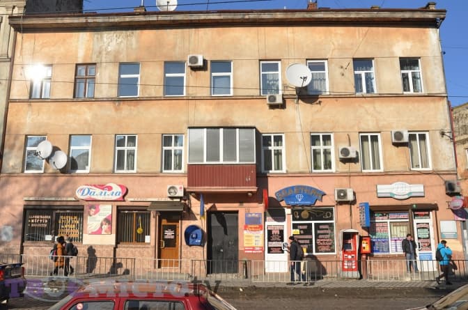 Мешканцям будинків слід уміти домовлятися між собою про те, аби вікна були хоча б одного кольору. Хоча це не рятує будинок із наступного фото (Городоцька, 82): нижня частина фасаду тут оформлена варварсько. «Поєднання диких кольорів, страшних шрифтів, туалетна плитка на цоколі, дешеві пластикові двері», – ставить діагноз Олександр Шутюк.