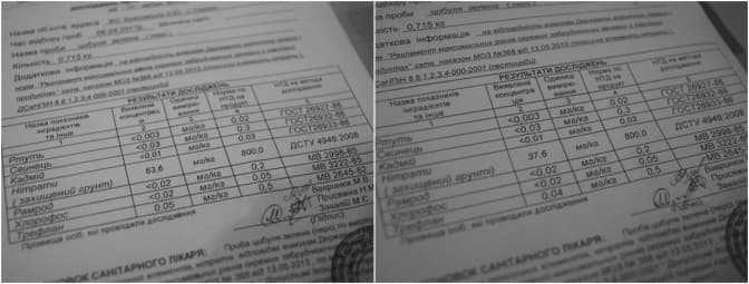 У призначений день забираємо результати. В лабораторії не знали, що ми журналісти – думали, перевіряємо власний врожай. Тому заспокоюють: можете продавати. В обох зразках концентрація шкідливий речовин у десять разів менша від допустимої норми. Цікаво, що концентрація нітратів у цибулі з Краківського трохи вища (63,6 мг/кг), ніж у грибовицькій (37,6 мг/кг), хоча однаково менша за норму – 800 мг/кг.