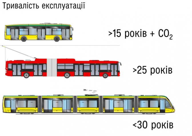 Є проект закупівлі транспорту з допомогою Європейського інвестиційного банку і Європейського банку реконструкції та розвитку, який передбачає придбання 35 тролейбусів. Цього замало. 45% тих, які має Львів, вже пора списувати. Оптимальний термін експлуатації тролейбусів – 25 років.