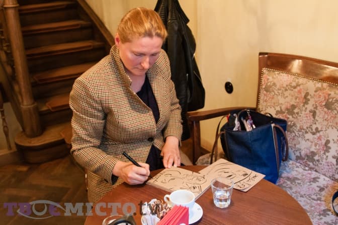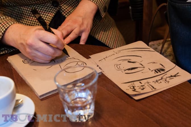 Головне – це мати ідею та доносити її до глядача. Я працювала копіїстом у Музеї д’Орсе в Парижі, і там мені прийшла ідея серії ліногравюр Сoffee drinkers. Зранку я займалась копією картини в музеї, а потім гуляла його залами та роздивлялась картини. Там було дуже багато картин з назвою The absinthe drinkers: людей, що п’ють абсент, малювали Мане, Моне, Пікассо, Тулуз-Лотрек. Абсент був популярний. Найпопулярніший напій нашого часу – це кава, оскільки чай дорогий, його не всі можуть собі дозволити. Якщо в Європі горнятко кави коштує в середньому півтора євро, то за чай можна заплатити і десять. І я почала робити замальовки своїх друзів та знайомих, які п’ють каву.