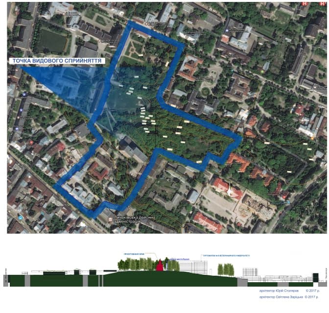 «Ця зона не має статусу парку, не має документів на землю і не має нормального проходу для мешканців. Через це така територія занепадає: доріжок немає, схили закинуті сміттям, там смажать шашлики під горілку. Це є цікава територія в центрі міста, але зараз її використання виглядає досить сумно», – розповів розробник проекту, архітектор інституту «Містопроект» Юрій Столяров.