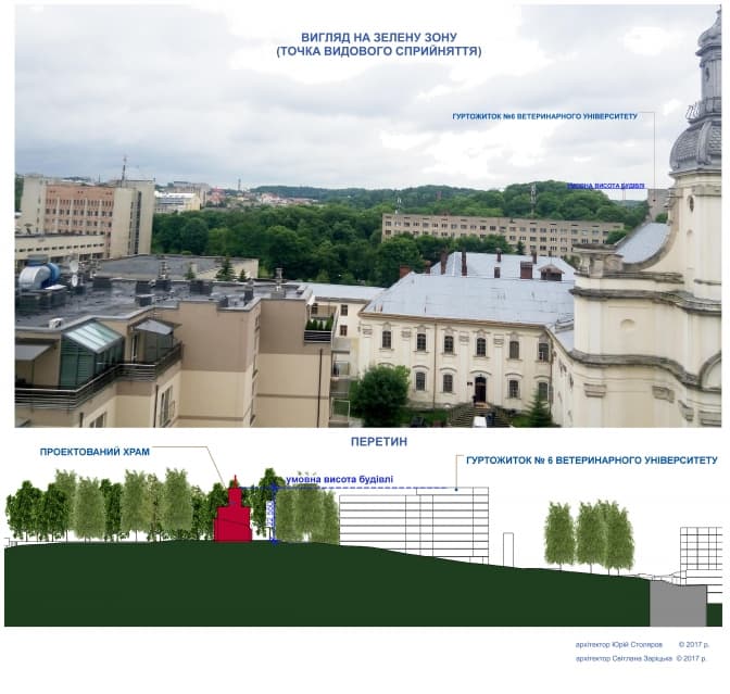 У зеленій зоні біля університету ветеринарної медицини у Львові планують звести церкву Української православної церкви Київського патріархату. Архітектор і настоятель громади вважають, що в такий спосіб занедбана зона перетвориться на парк і стане безпечнішою. Але не всі львів’яни поділяють думку, що для перетворення громадського простору необхідно будувати церкву.