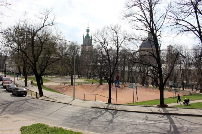 На терені алей знаходиться Порохова вежа, поруч — міський арсенал. Посеред зелені стоїть старий шкільний будинок — колишня німецька гімназія (сучасна середня школа № 8). Будинок зведено у 1809 році, а після реорганізаційних робіт за участю архітектора Христофора Рессіга з 1850 року у цьому приміщенні міститься заснована у 1818 р. друга вища міська гімназія з німецькою мовою викладання при Домініканському монастирі Львова.