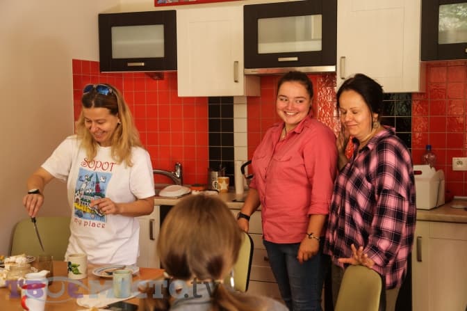 До тих, хто живе тут постійно, рідні можуть приходити в будь-який час. І залишатись на ніч – у кожній кімнаті є достатньо місця, щоб переночувати. Ще є просторе кафе в підвалі, яким займаються волонтери: там можна приготувати собі їжу, послухати музику, почитати, розвіятися, поспілкуватися. Подивитись на рибок в акваріумі.