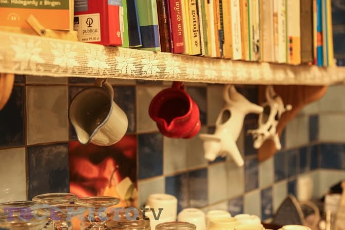 У майстерні десятки полиць, де застигають чашки, підсвічники, тарілки, кахлі для першого поверху, сходів і кухні. Сотні пакетів із різнобарвною глазур’ю, пензлики й банки з фарбою.