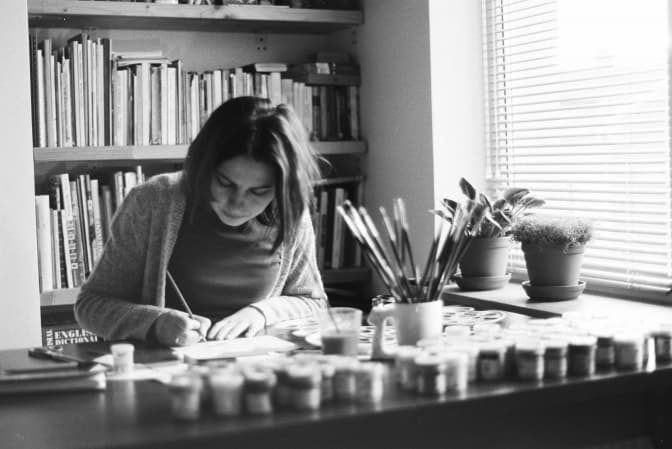 До художньої школи я прийшла років у двадцять. Водила на малювання молодшу сестру, а сама спостерігала, як малюють діти. Побачивши мою зацікавленість, учителька запропонувала спробувати помалювати самій. Сестра покинула художню школу за кілька місяців, а я залишилася ще на півроку. Мені подобалися яскраві кольори, гуаш, безпосередність і можливість розкрити внутрішній світ. Для батьків було дивиною, що я малюю, адже у школі мама мусила допомагати мені з домашнім завданням із малювання – я мала щодо цього багато комплексів.