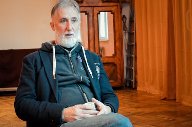 Я в театрі був одним із перших. І не лише працював у ньому, а й таємно мешкав, ховався. Я не зі Львова, й на той час не мав свого житла. Повертався сюди, коли втрачав квартиру, яку винаймав, або не мав грошей заплатити за житло, бо зарплата в мене була нищівна, символічна. Тоді я мешкав тут. Спершу в кімнатці під сценою, потім на глядацькому балконі. Був період, коли зі мною жив ще один актор – ми брали два ліжка з вистави і спали на них.