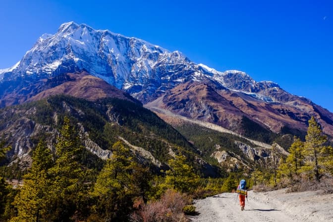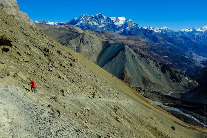 Трек навколо Аннапурни колись був маршрутом буддистських паломників до священних храмів у долині Муктінатх, а з 70-х років відкрився для туристів. Одна з головних переваг треку – це різноманітність: знизу ростуть банани, а зверху лежать льодовики і височіють гори-восьмитисячники. Також трек різноманітний в культурному плані: внизу можна побачити, як живуть індуїсти, а нагорі – буддисти. А в долині Муктінатх, важливому центрі паломництва, є цілий храмовий комплекс, одночасно і буддистське, і індуїстське святилище. У цій долині варто залишитися хоча б на кілька днів, походити по навколишніх селах, побачити тутешнє життя. Багато місцевих є вихідцями з Тибету, а не непальцями. Попри те, що маршрут дуже популярний, на треку багато справжнього життя. Тут не все крутиться навколо туризму. Вважається, що трек нескладний, і його можуть подужати європейські пенсіонери. Детальніше про маршрут можна прочитати у блозі Володі Гринюка.