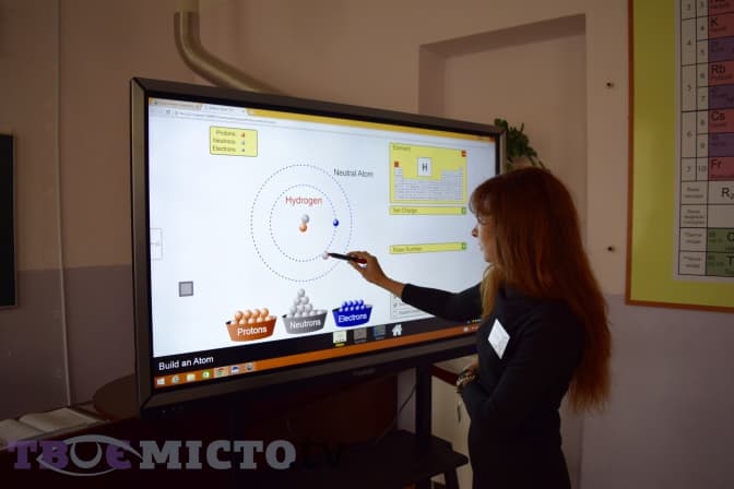 «Ми робимо багато вправ. Дуже гарно пояснювати будову атома – вони бачать модель наочно. Коли я пояснюю властивості хімічних речовин, запускаю відеоролики. Наприклад, є токсичні речовини, які я не можу показати, а тема така є. На відео вони можуть побачити ці реакції», – каже вчителька хімії Ганна Кебас.