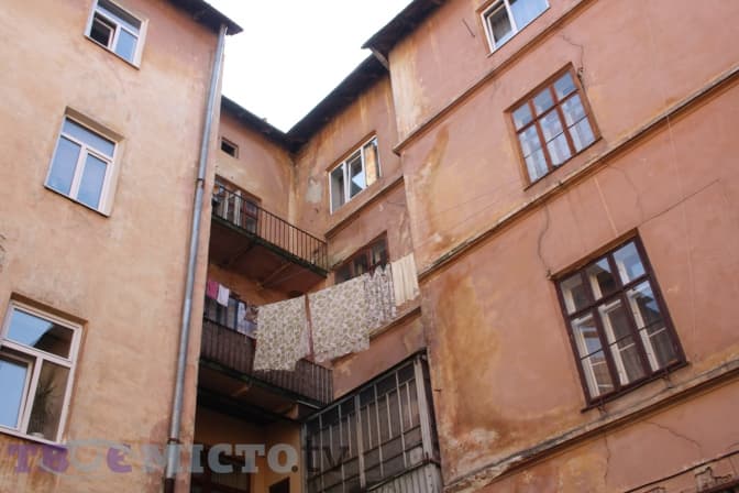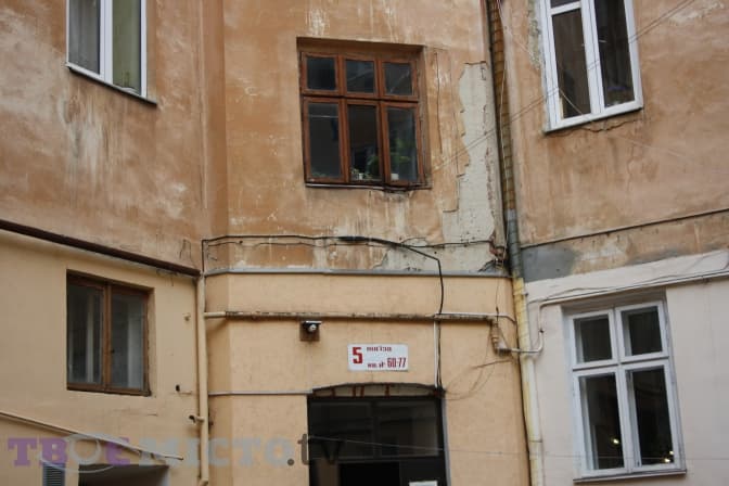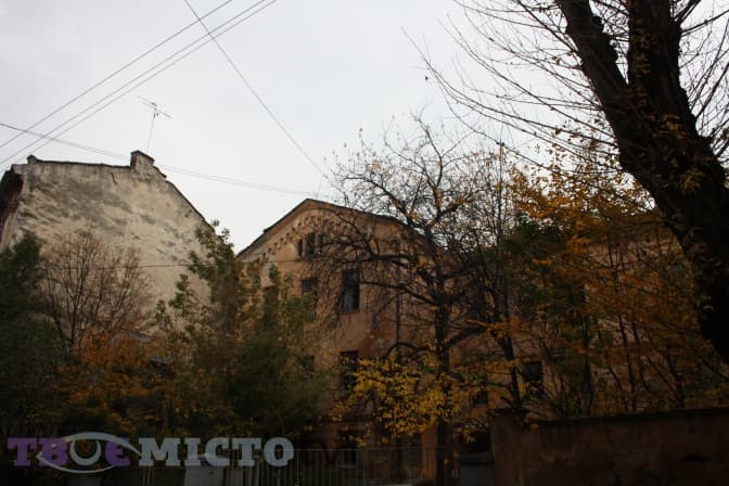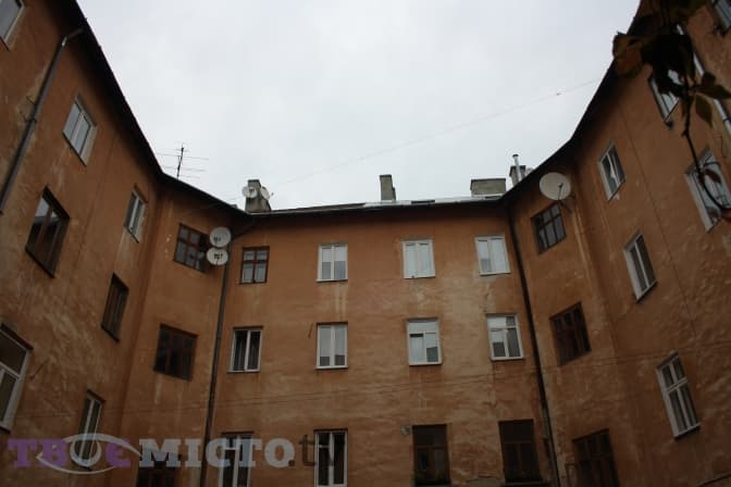 У будинку два власних подвір’я та третє спільне з сусідньою будівлею, 8 сходових майданчиків (зараз це під’їзди)