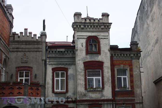 На відміну від парадного фасаду, всередині двору немає декору, все виглядає доволі бідно. А над частиною подвір’я був скляний дах. Раніше через подвір’я можна було проїхати між вулицею Стефаника та вулицею Тихою.