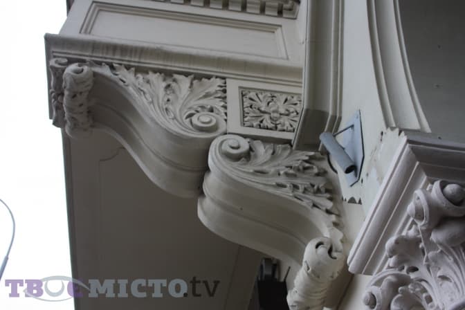 Спочатку фасад мав імітацію кам'яного мурування у тиньку, яке, очевидно, під час якогось ремонту було заштукатурене і перефарбоване. Крім того, будівлю зводили вже одразу з усіма комунікаціями.