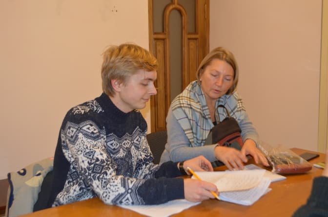 Заняття починаються о 18.00 – зручний час і для тих, хто працює, і для тих, хто вчиться. Максим завжди приходить на заняття, хоч по завершенні й не встигає на електричку до Щирця. Розповідає про одне з домашніх завдань, яке йому сподобалось: «Нам сказали написати твір і дали кілька тем. Спочатку я думав, що буде важко, не розумів, навіщо таке завдання. Але, коли сів писати, мені стало справді цікаво. Я просив і надалі задавати нам твори. Коли пишеш, збагачується словниковий запас, стають помітними орфографічні й пунктуаційні помилки». Втім, завдання учням дають нечасто, адже вони зайняті роботою й навчанням.
