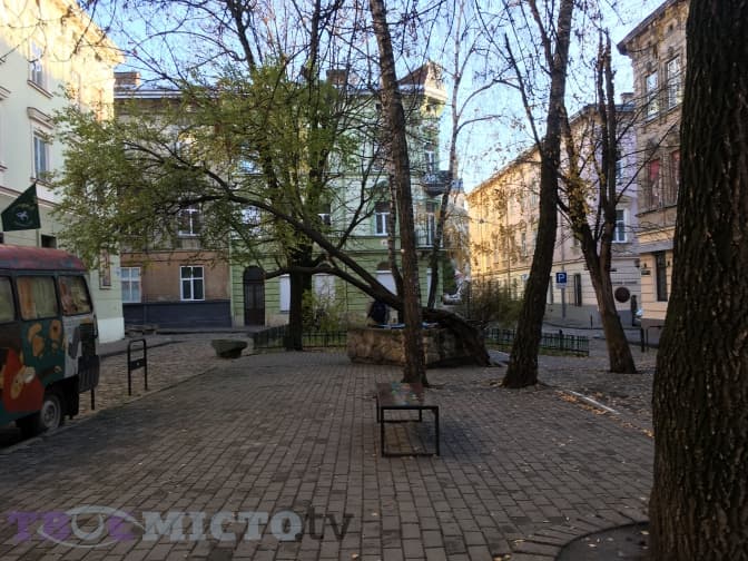 Це найменша площа в Україні. Колись вона називалася Векслярською, бо саме тут стояли міняйли й обмінювали валюту. На цій площі була розташована криниця єврейського кварталу.