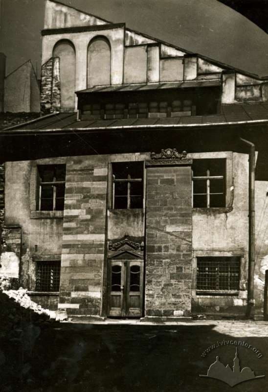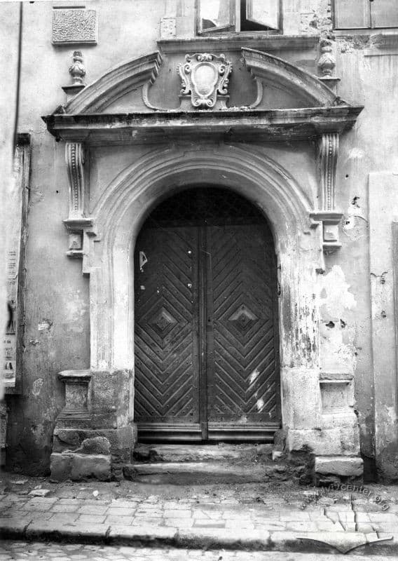 Бароковий портал неіснуючої кам'яниці на теперішній вулиці Івана Федорова. Сучасники фотографа, знавці давньої архітектури відзначали ще кам'яні консолі ХVII ст., що підтримували ганок у подвір'ї. У 1907 р. тогочасна власниця будинку знесла його, на цьому місці було збудовано звичайний житловий будинок, типовий для початку ХХ ст.