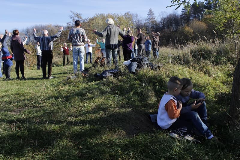 Яросвіта і Світояра у колі немає. Брати дивляться на початок дійства з невеликого пагорба, бавляться, стрибаючи один на одного, а потім сідають спиною до капища дивитись відео з мобільного. На славленні вони не вперше. До участі їх ніхто не змушує.