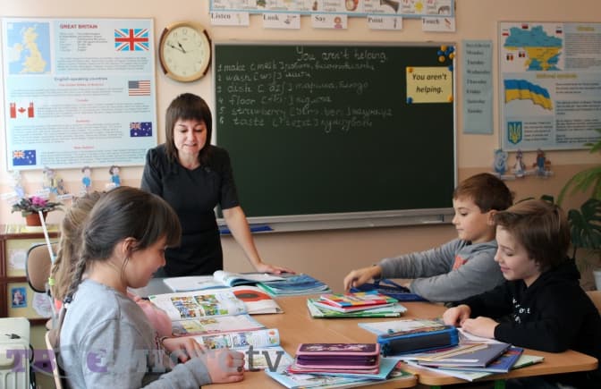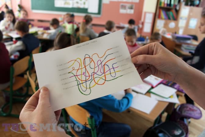 У другому класі вчителька Леся Дзюбан проводить інтегрований урок української мови та природознавства. Традиційно кожна дитина має тематичні зошити. «Ми вивчаємо гриби, знайомимось із подвійними чи потрійними назвами. Пари слів учні повинні переписати в зошит з української й пояснити значення кожної пари», – розповідає вона.