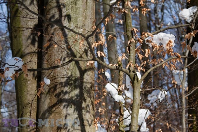 На снігу видно вервечку слідів – нещодавно понад яром пройшла козуля, розрила землю, поласувала гілками та пішла вглиб лісу. Стежку перегородили повалені дерева: коріння, стовбури та гілки сплелись в одне притрушене снігом мереживо. На перший погляд узимку ліс має лише три кольори – сіру кору буків, білий сніг та руде минулорічне листя. Такими ж кольорами розфарбована форма людей, які працюють тут, у заповіднику «Розточчя».