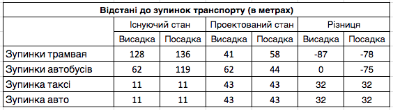 «Додаткові 32 метри (а це, для порівняння, трохи більше, ніж довжина одного залізничного вагону) для проходу від таксі до вокзалу є єдиною незручністю. Натомість це поставить пасажирів усіх видів транспорту в рівні умови», – каже Олександра Сладкова.