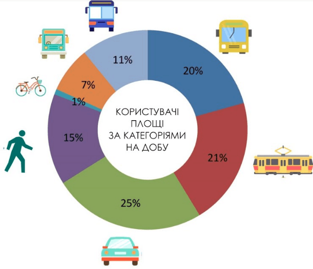 «Для того, аби отримати точні дані про наявні пішохідно-транспортні потоки, ми проаналізували роботу площі та перехрестя Чернівецька-Городоцька в час пікових навантажень – протягом доби однієї з п’ятниць. Було задокументовано не лише кількість транспорту, але й кількість людей, що йдуть Чернівецькою пішки», – пояснила Олександра Сладкова.