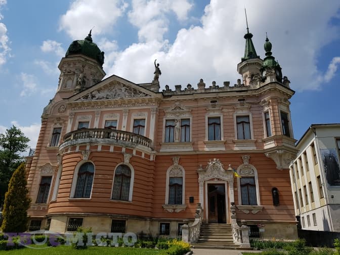 Піднімаємось ще вище, із правого боку бачимо розкішний палац – пишно декоровану під бароко та класицизм віллу, яку збудували у 1897-1898 роках за проектом архітектора Владислава Рауша на замовлення професора Львівського університету, відомого геолога, географа та мандрівника Еміля Дуніковського