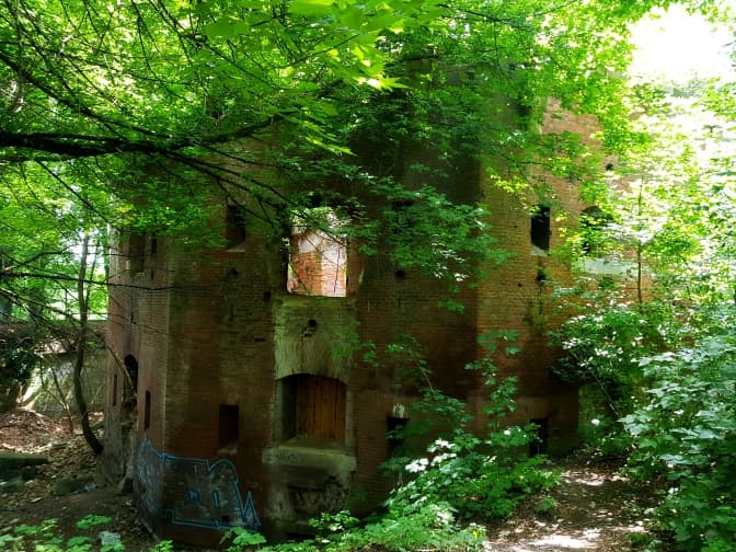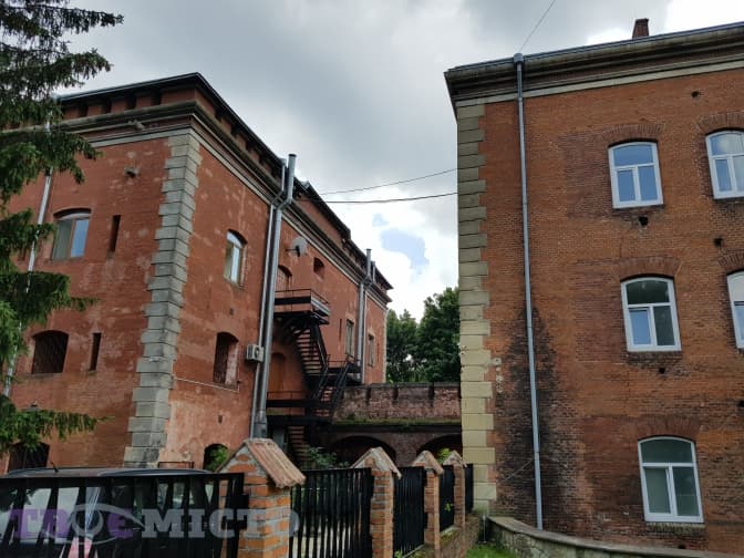 Спускаємося до корпусу казарм з квадратними баштами з червоної цегли. Нині тут бізнес-центр.