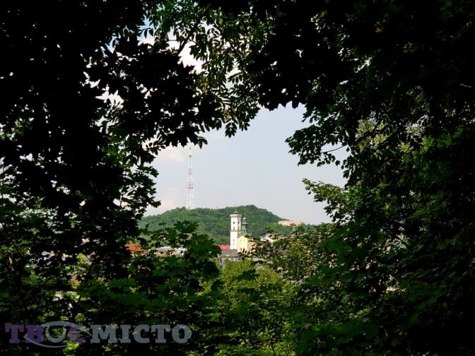.. та ще один незвичний вигляд на центр Львова з-поміж крон дерев.