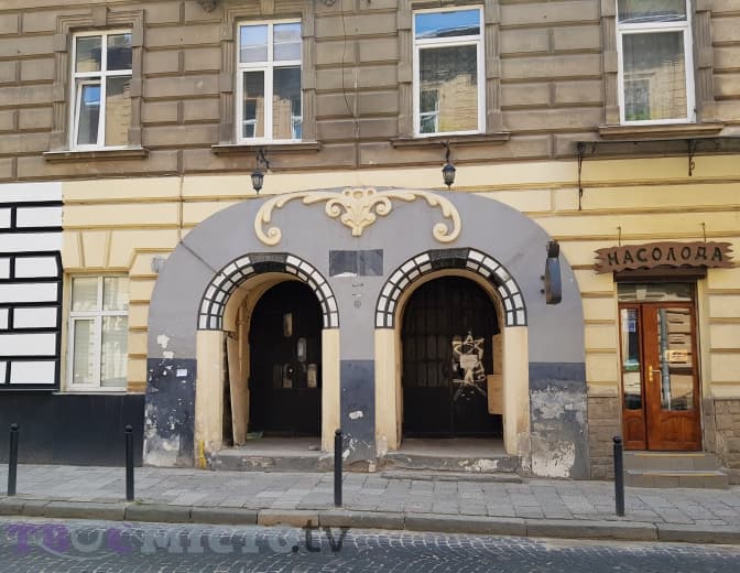 Спускаємося донизу та повертаємо вправо на вулицю Стефаника, де під номером 10 бачимо будинок із оригінальним вхідним порталом.