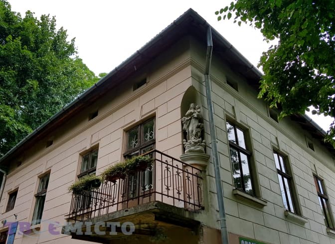 Цікавим є і другий корпус диспансеру в глибині двору з оригінальною наріжною скульптурою Матері Божої.