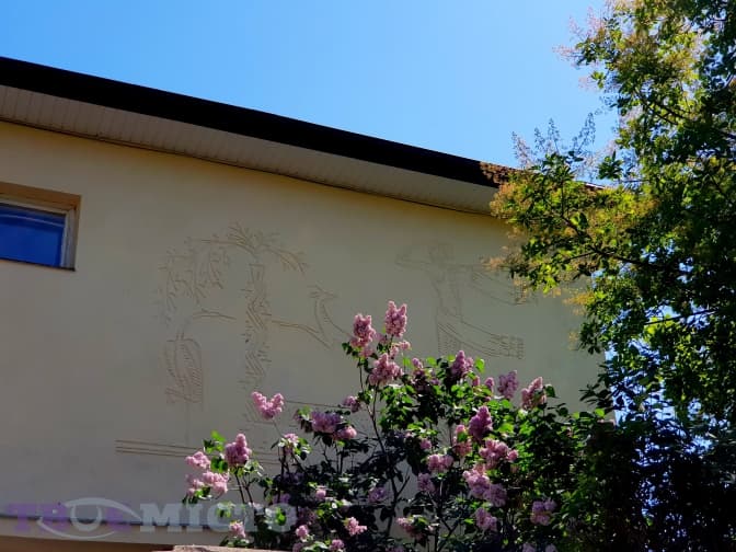 …та розташована поруч із ним вілла художника Божемського, прикрашена композицією «Дівчина з рушником» у стилі сграфіто.