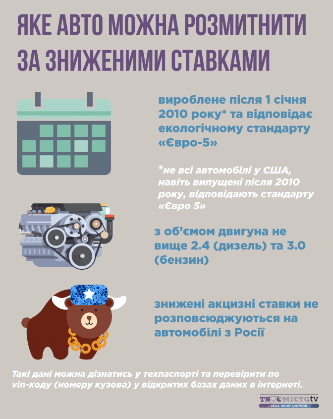 Також ще одним важливим моментом є те, що за зниженими ставками можна розмитнити авто з об’ємом двигуна не більше 2,4 (дизель) та 3,0 (бензин).