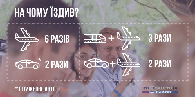 Лише у двох випадках йому для пересування знадобився виключно службовий автомобіль – у березні для поїздки у Великі Мости та у червня – для відвідин Чернівців в рамках Urban Talks.