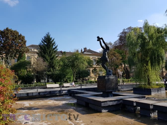 Посеред площі колись був фонтан. Посеред фонтану, який зараз не діє, у 1975 році встановили пам’ятник подвигу лікарів у Другій світовій війні авторства Івана Кушніра.