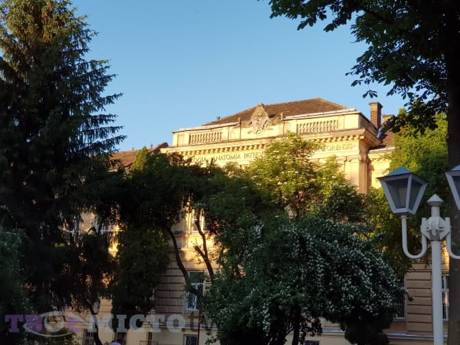 Одразу ж за пам’ятником бачимо анатомічний корпус медуніверситету, який одночасно є одним з міських моргів.