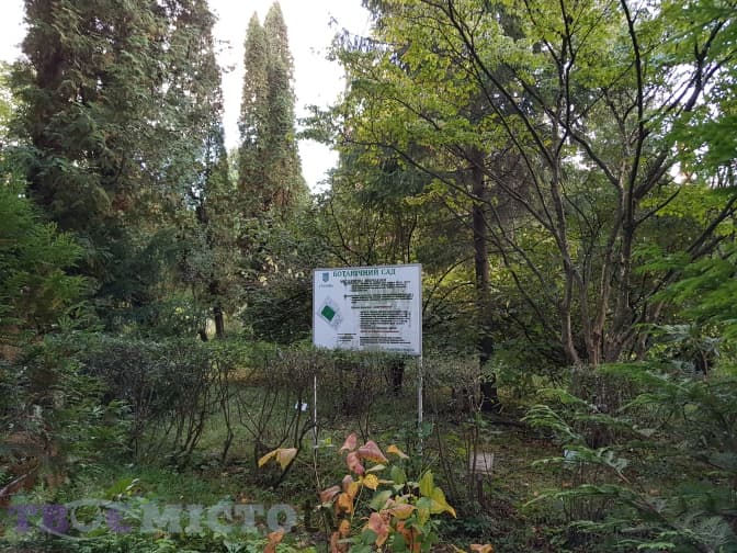 Одразу ж за каплицею бачимо невелику зелену зону – ботанічний сад при кафедрі фармакології та ботаніки медуніверситету, що веде свою історію з 1936 року.