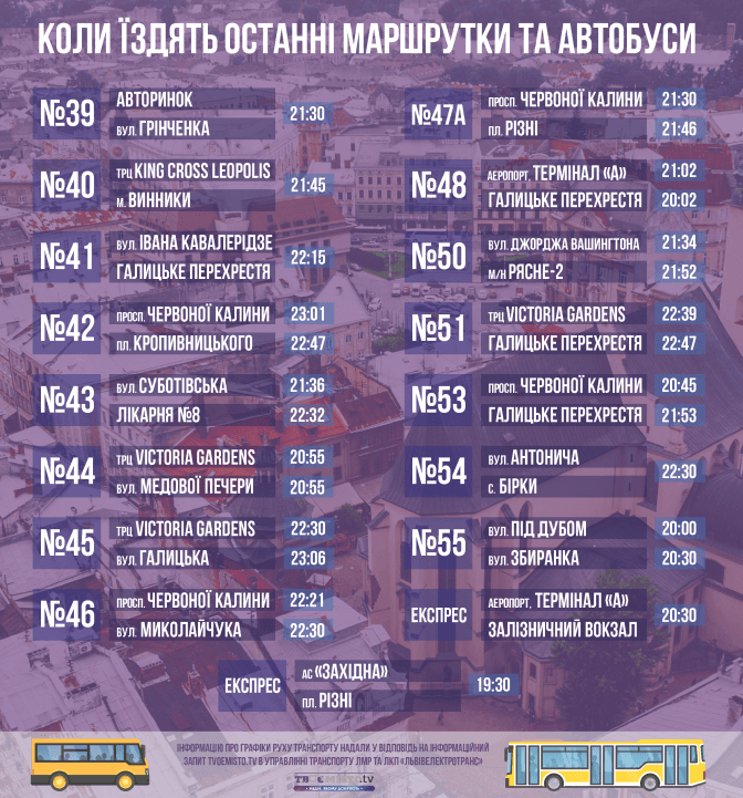 Учора, 2 жовтня, Tvoemisto.tv опублікувало офіційно затверджений графік руху останніх маршруток, автобусів, тролейбусів та трамваїв у Львові, який надали у відповідь на інформаційний запит видання. Після цього у Facebook львів'яни почали писати про те, що водії часто не дотримуються вказаних графіків, або автобуси припиняють курсувати ще за декілька годин до закінчення робочого дня...