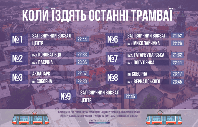 Інформацію про графіки руху транспорту надали у відповідь на інформаційний запит Tvoemisto.tv в управлінні транспорту ЛМР та ЛКП «Львівелектротранс».