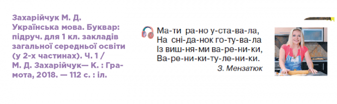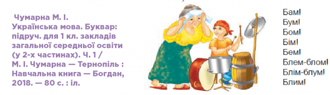Буквар, якого немає на сайті МОН, укладала Мар'яна Захарійчук. До теми сім'ї тут теж звертаються часто – 32 рази. Тато присутній 12 разів, мама – 18. Бабуся і дідусь на сторінках букваря з'являються по 12 разів.