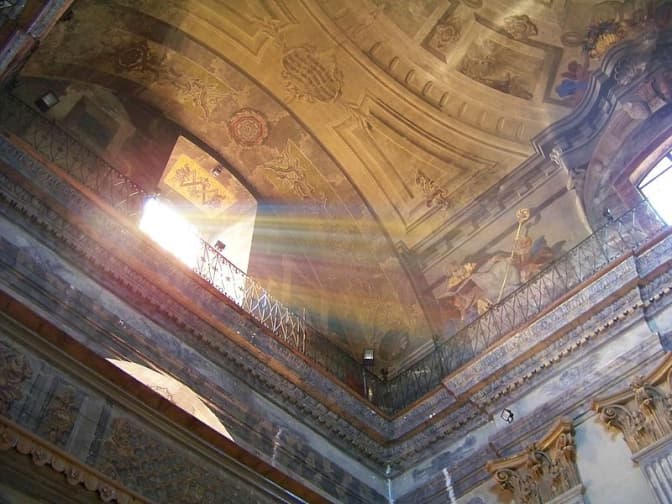 Основним елементом стінопису кармелітської святині стали розписи куполу над вівтарем, де архистратиг Михаїл побиває чорні сили сатани. Ця сцена визначила ідейний зміст вівтарної частини храму.