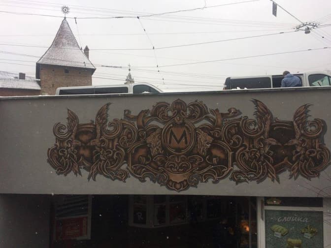 «На площі Митній у межах маршруту ми вирішили зробити жарт у стилі фільму "Метро". Насправді ж вихід львівського підземного трамваю планували на площі Галицькій, але там нема, де зробити графіті. Тому ми використали площу Митну, підібрали відповідний стиль, який гармонією з будинками навколо, і намалювали літеру "М". Всередині плануємо розповідь про історію підземного трамваю. Так, гіди-екскурсоводи зможуть тепер не просто розповідати про "львівське метро", а й показувати його», – розповідає засновник громадської організації Андрій Мочурад.