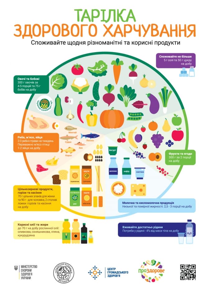 Тим часом у МОЗ для складання меню радять спиратись на «Тарілку здорового харчування», запропоновану міністерством минулого року. Фахівці наголошують, що овочі та фрукти різних кольорів та виду мають становити основну частину прийому їжі – ½ тарілки.