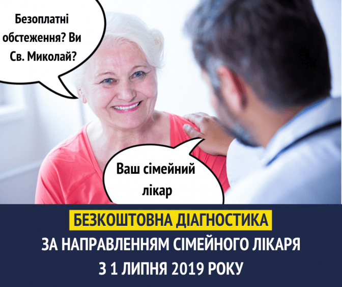 «За направленням вашого сімейного лікаря, терапевта або педіатра, можна буде безоплатно пройти обстеження на поширені хвороби внутрішніх органів, серця, легенів та найбільш розповсюджених видів онкології у чоловіків і жінок», – каже в. о. міністерки охорони здоров'я Уляна Супрун.
