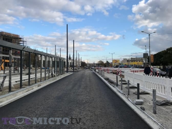 Наразі тут уже замінили підземні комунікації, проклали трамвайні колії, замостили її бруківкою, встановили зупинкові павільйони, а днями на проїжджій частині, де курсуватимуть автобуси, проклали перший шар асфальту. На пішохідній частині посередині площі встановили кілька лавок.