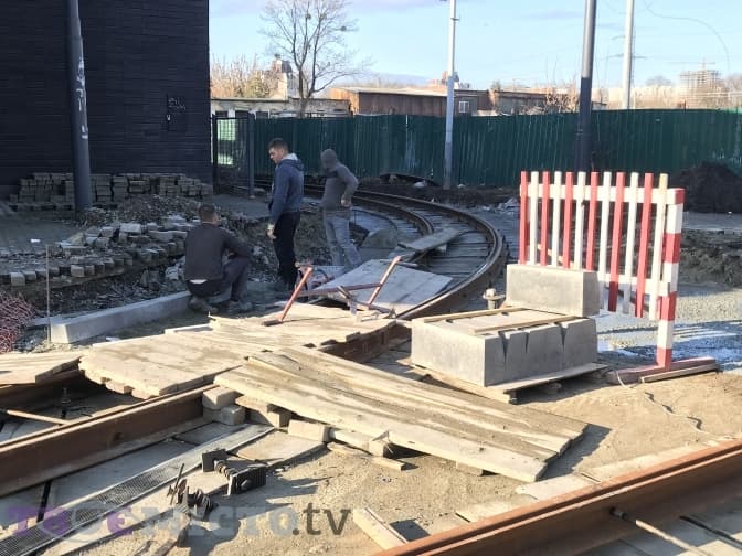 Паралельно підрядний працює на ділянці біля вулиці Торфяної та Гайдамацької, де вже вкладають колії та бруківку. Після реконструкції вся вулиця буде замощена бруківкою, будуть паркувальні кишені та острівні зупинки, а також молоді саджанці.