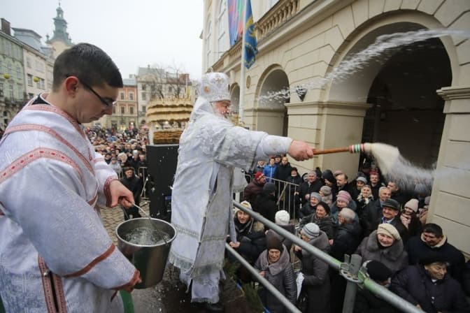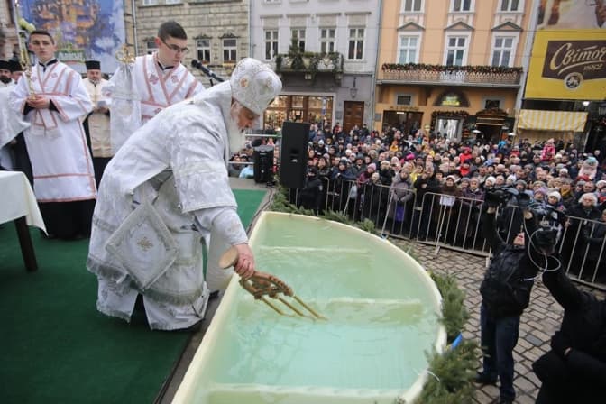 У центрі Львова сьогодні, 19 січня, відбулося традиційне загальноміське водосвяття, в якому взяли участь представники різних конфесій міста.