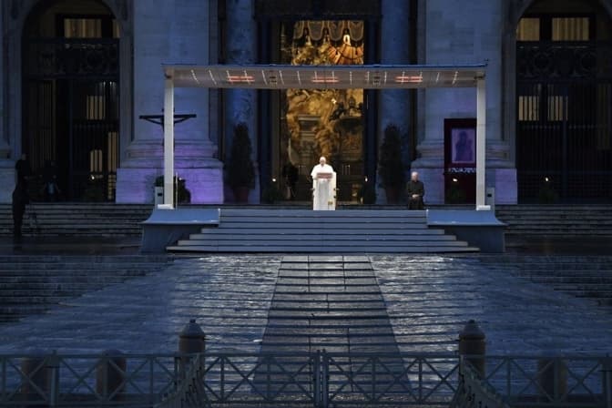 Сьогодні, 27 березня, Папа Римський Франциск уділив позачергове благословення Urbi et Orbi з площі Святого Петра у Ватикані. Через жорсткі карантинні заходи та пандемію коронавірусу він молився перед порожньою площею.