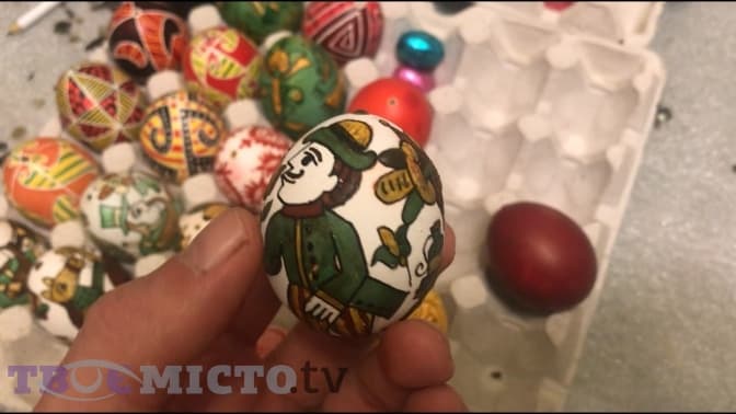 «Я пишу писанки не на цілих яйцях, бо вони погано зберігаються, а на видутих. Тому спочатку треба підготувати багато шкаралупок. Цього року я пишу близько 40 писанок. Насправді мої писанки мальовані навиворіт. Бо у традиційних писанках на білому яйці писачком малюють білі узори. Я роблю інакше – спочатку зафарбовую яйця у чорний або червоний колір».