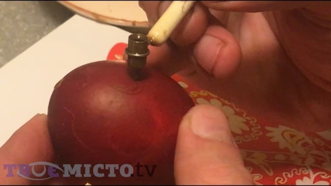 «Все, що ми покриваємо воском, до цієї ділянки шкаралупки нема доступу іншої фарби» – пояснює Остап.